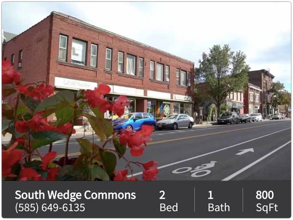Description: South Wedge Commons are impeccably maintained apartments in Rochester's South Wedge neighborhood. Conveniently on a side street off South Ave. there are several court yard areas to play or socialize with neighbors. We're minutes to Highland Hospital and UR Medical Center. Walk to area stores, restaurants or take a stroll through Highland Park! Come see what the Perfect Location is all about!