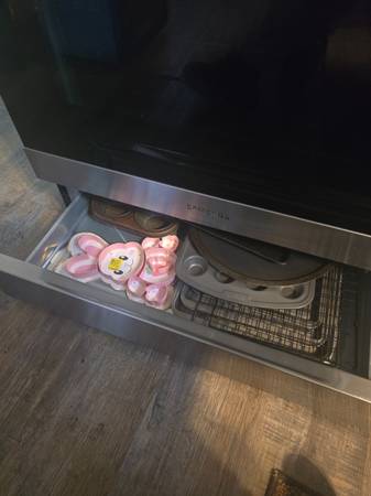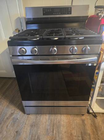 Like new. Oven has a LOT. Air fryer. Bread proof. Dehydrate. And of course broil and bake. 5 burner stove top. Storage drawer.