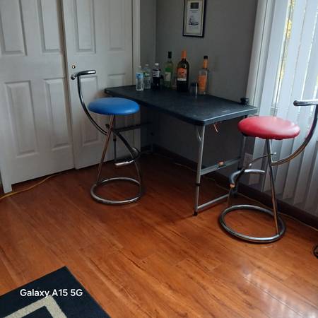 Couch Table bar stools fans for free Queen Size Beds package Deal $250 for both Or buy separately