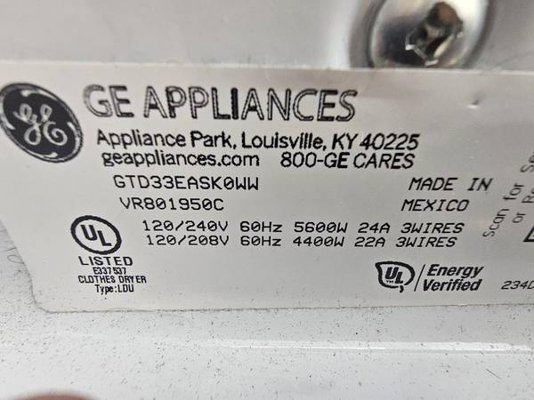 2 YEARS OLD GE DRYER MODEL GTD33EASK0WW IN EXCELLENT CONDITION. Current Model at LOWES AND HOME DEPOT Current List $749.00 Sale Price New $538.00. MUST PICK UP.......CASH ONLY