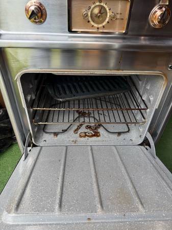 This is an oven that works great. Been in use for quite some time obviously. The only reason it’s for sale is bc we upgraded recently. The clock is the only thing that that doesn’t work and hasn’t. Elements work great. Perfect temp. Parts are still available if ever needed. I’d like to see it put to use instead of ending up in a landfill. Have matching electric GE cooktop with push buttons same era that works( pictured)!! Make me an offer. Take em out of here.