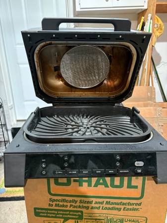 Barely used electric grill and air fryer; smokeless grilling indoors; built-in temperature probe.