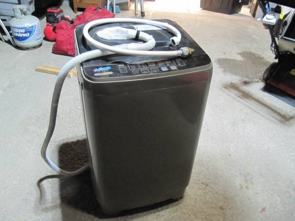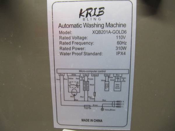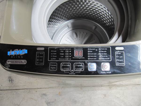 Krib Bling 1.38 cubic ft. clothes washer. Has 10 preset programs. Perfect for washing t-shirs, socks, under clothes. will do towels and jeans. Used in an apartment, easy to hook up and to operate. Saves you from having to go out in the winter to the laundromat.