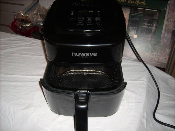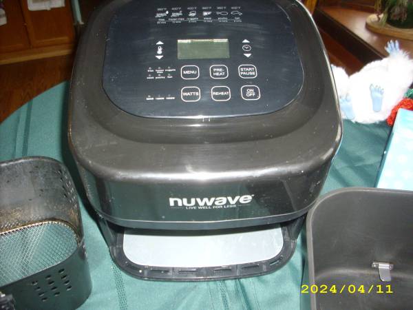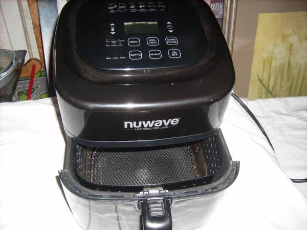 This NuWave appliance uses hot air and high speed air circulation to cook food with little to no oil.