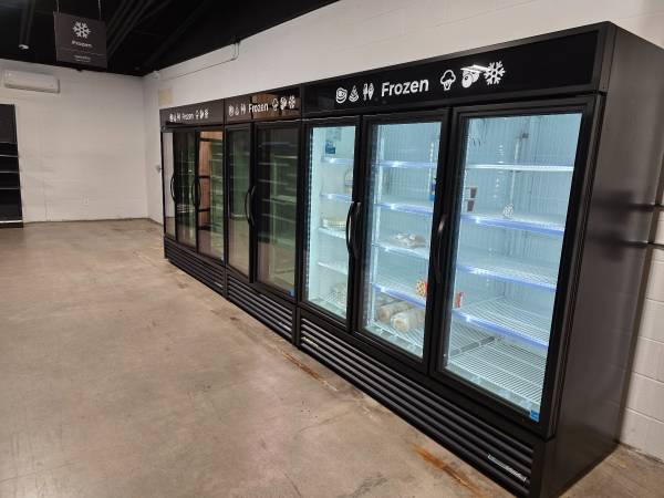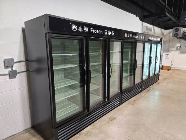Only 8 months old, Commercial Freezers. One of the 3 door units is a desert/ice cream freezer. See pictures for specks. 2-door unit $4,500 3-door unit $5,900 3-door desert $6,900