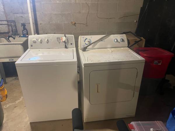 Kenmore Washer Works but not too well not sure what’s wrong with it Has issue Needs cleaning Amana Dryer Works ok , sometimes needs an extra spin Owned for about 10 years Needs cleaning They are in...