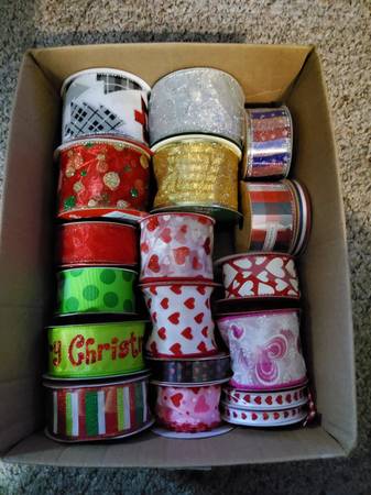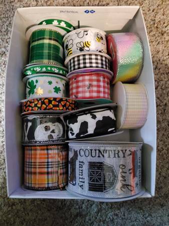 Assorted ribbon rolls Assorted widths Most are brand new or hardly used All rolls are a $1 a roll