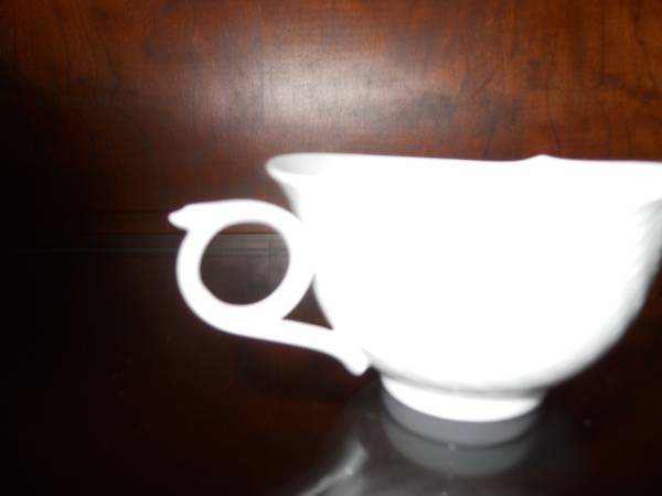 White Meissen ware (crossed swords emblem), purchased in Meissen Germany. Matching tea, coffee, and espresso cups with saucers. Total of 3 cups and 3 saucers. New. Never used. No chips, cracks,...