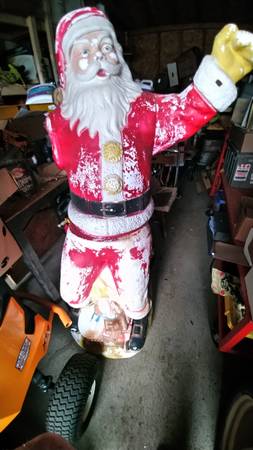 Very rare Poloron Animated Santa. Looks like the original paint, doesn't appear to be any cracks and it does have the motor (not tested yet). It is missing the right arm and lantern. They do come up for sale sometimes.