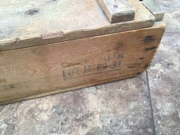 US Military (Army or Marine) wooden crate. Has original rope handles and the latch and hinges work fine.