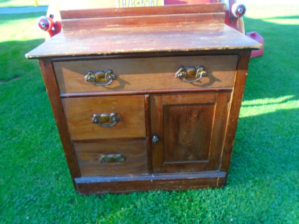 For Sale I have this Nice Vintage Oak Wash Stand With Drawers and Compartment Door Nice Condition, Refinish or paint or clean and use as is Please Call Dennis at Phn# three--zero--zero--seven--four--eight--four. Area code, (5---eight---5) Calls Preferred. If I'm Not Available, Text if you Must Please No Emails. Yes I will Take $35.00. Measures approx 3 et wide by 30 inches tall. Hand Cut Dove Tail Drawers!