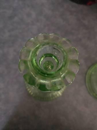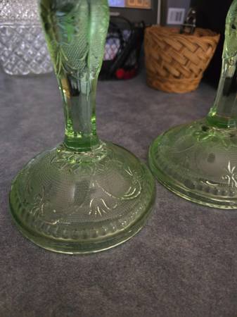Vintage INDIANA TIARA GLASS Chantilly Green Candlestick Candle Holders 2pcs. Perfect condition. $30