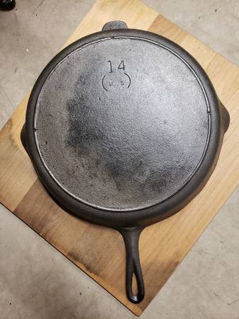 For sale is a vintage Mid-Century 3 notch Lodge cast iron skillet. These big ones are exceedingly harder to find. This skillet has been cleaned by electrolysis and has a thin coating of organic flax seed oil applied to minimize rust. The skillet is ready for the seasoning of your choice. Call 585- 2 one 7 - 2 one 5 one
