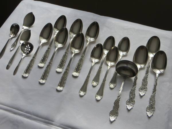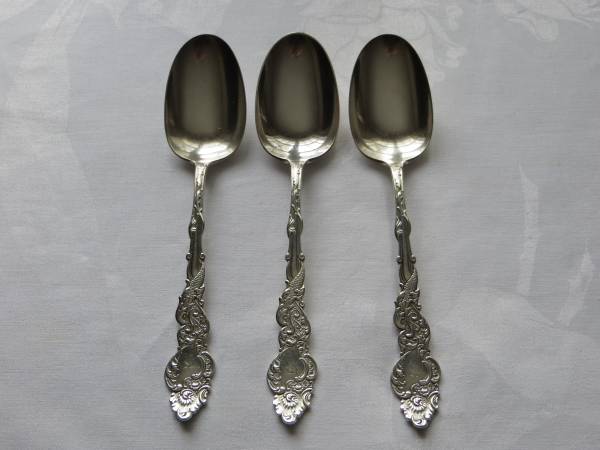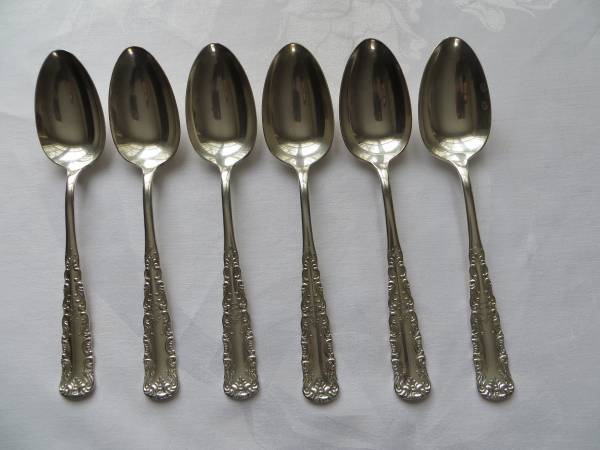 6 - 1847 Rogers Bros. serving spoons - "Portland" pattern, 1891, 8 1/8" ($2 ea.. vs. $16 ea. from Replacements Ltd.)