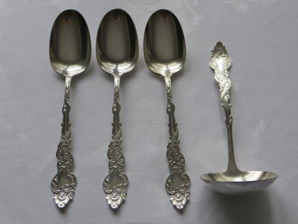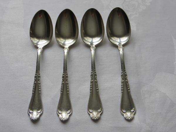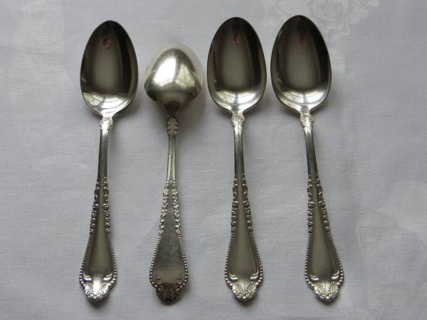 4 - 1847 Rogers Bros. serving spoons - "Norfolk" pattern, 1905, 7 1/4" ($2 ea. vs. $12 ea. from Replacement Ltd.)
