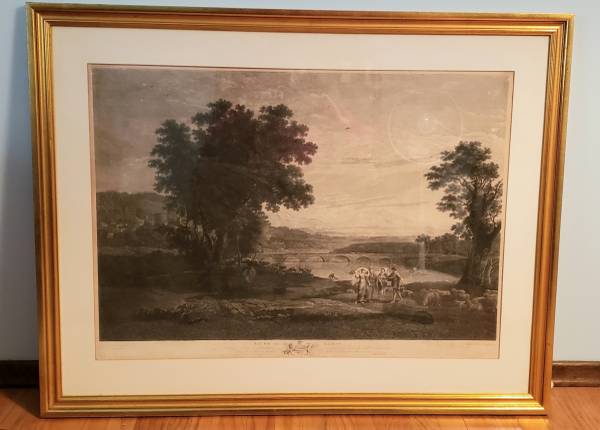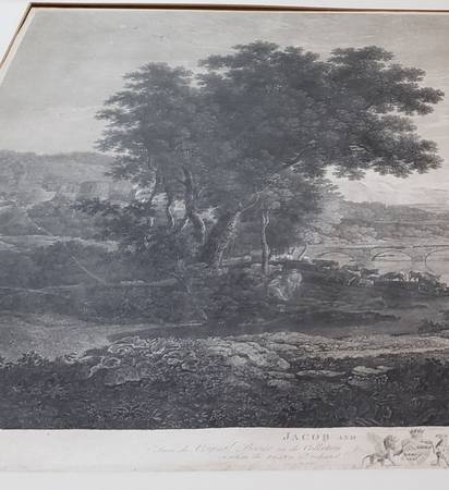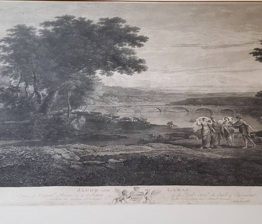 This stunning historical 1783 antique original black and white etching by William Woollett published by John Boydell has a golden wood frame with glass that adds to it's value. "Jacob and Laban Le Grand Point after Claude Lorrain" would make a great addition for collectors of fine art. William Woollett was a extremely talented English engraver born Aug 15, 1735 in Maidstone, United Kingdom passed May 23, 1785 at the age of 49 in London, United Kingdom. The picture size is 30.75" x 22" Framed dimensions 36" x 29.75". Pick up in Greece or delivery available. **See my other ads**