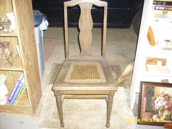 Vintage wooden accent chair with cane seat 18' to seat, 36" to top of chair 18" wide x 19" deep email or call land line will remove ad when sold