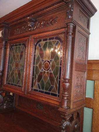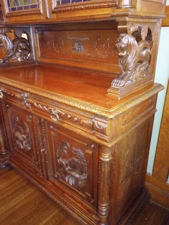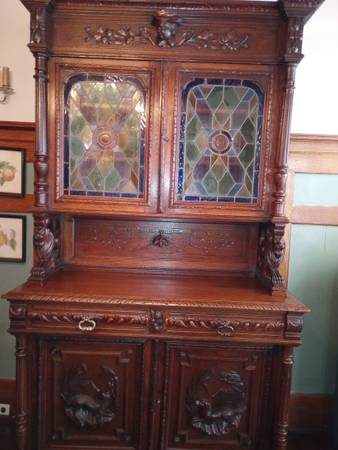 BEAUTIFUL CABINET WITH HAND CARVED FIGURES.