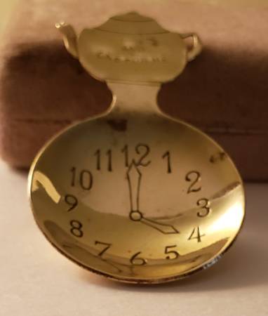Antique 1930's Weba Ware Tea Caddy Brass Spoon "And one for me" with clock display. Made in England. A beautiful unique piece. Pick up in Greece or shipping available. **See my other listings**