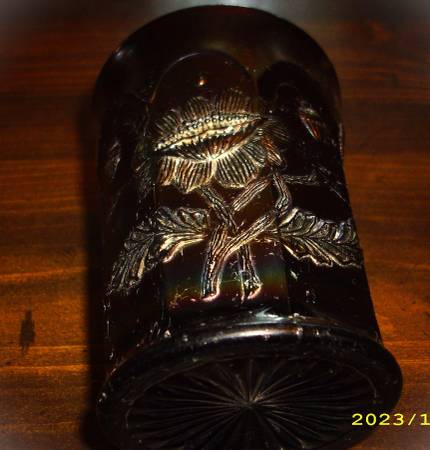 Northwood Oriental Poppy-Amethyst Tumbler Rare, Iridescent purple Discontinued in 1910 Call or e-mail, not a text enabled phone will remove ad when sold