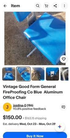 Juat 1 chair, Vintage Good Form General FireProofing Co turquoise Aluminum Frame Chair.