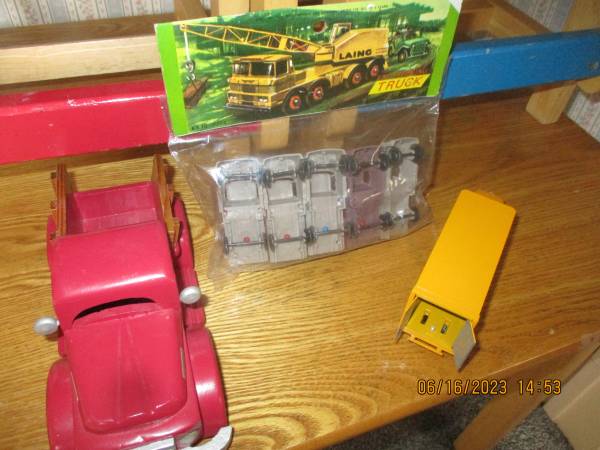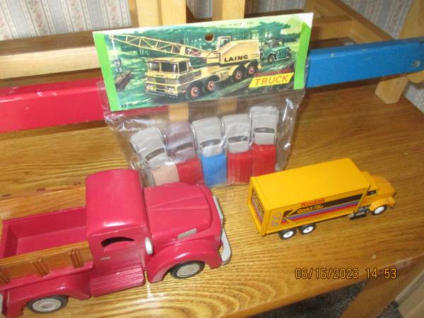 One is a package of 5 plastic trucks made in Hong Kong in the original packaging from the 1950's. Never played with.