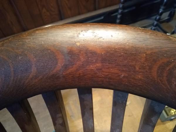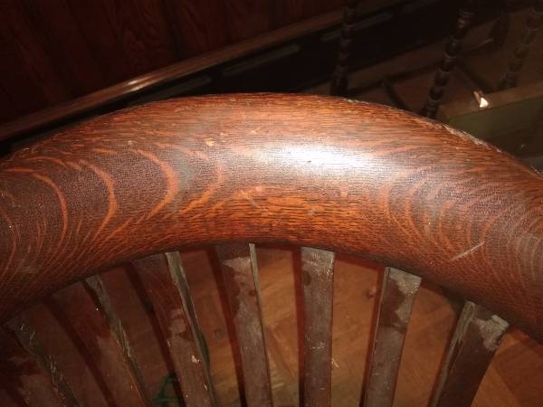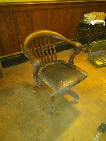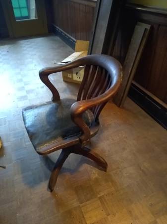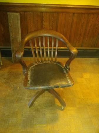 swivel office/banker's chair made well, very interesting wood patterns/shapes 26" wide x 21" deep x 33" tall