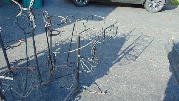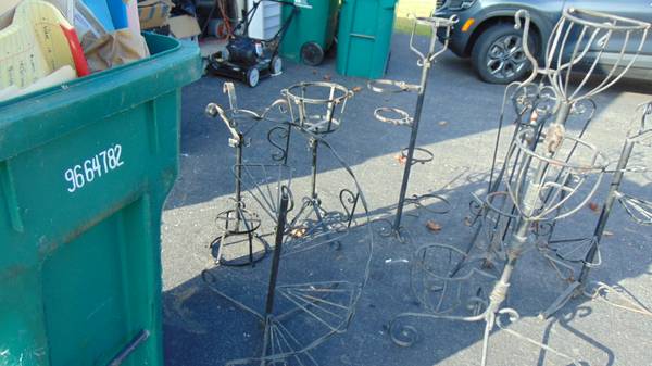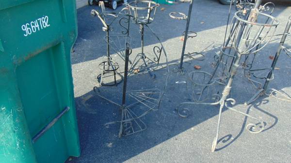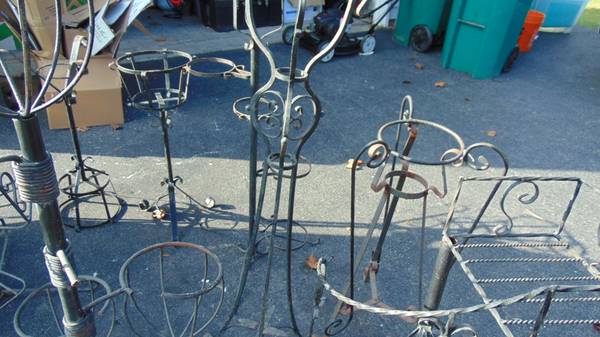 7 nice vintage wrought iron plant holders all color black . Open to reasonable offers