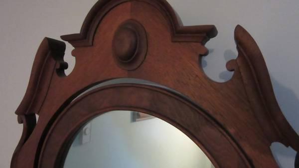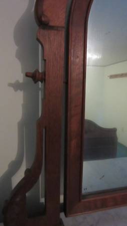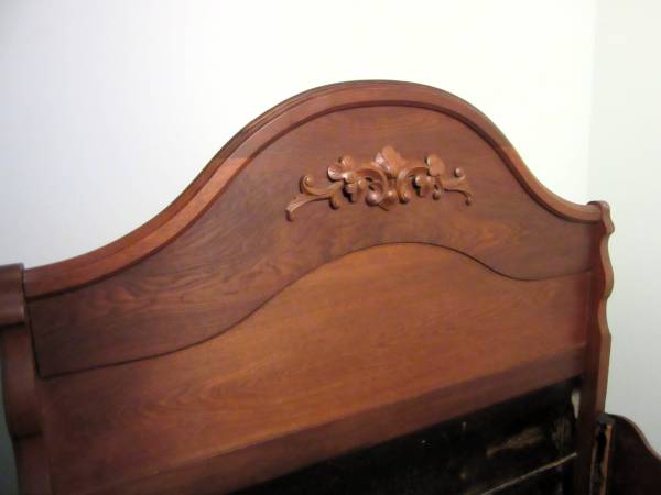This is a solid cherry bed frame and matching, mirrored dresser.