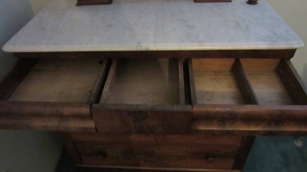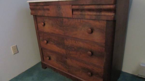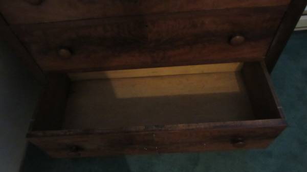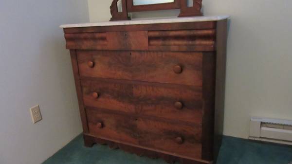 Buyer is responsible for removing it from a basement…..up one flight of straight stairs and into garage. Bed frame will be disassembled. The dresser will probably require two people.