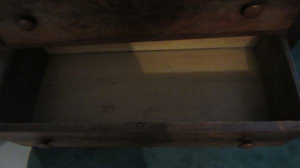 There are three small top drawers. Two are 13” wide and 16” deep and 3” deep inside. One drawer has a divider.