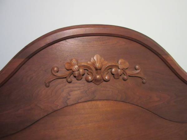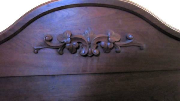 The hand-carved headboard and footboard are very ornate.