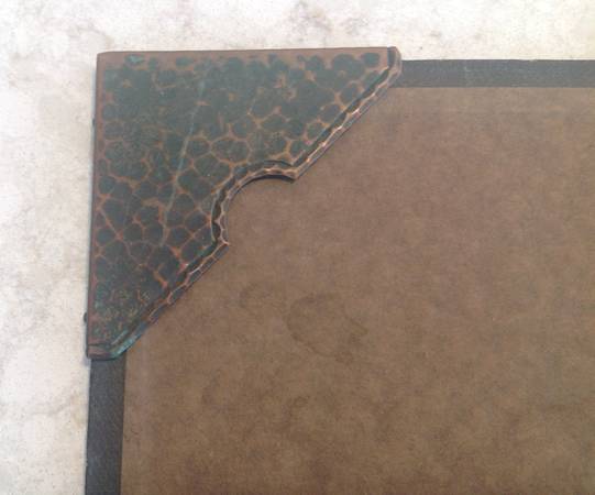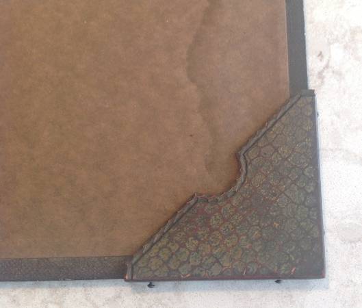 Authentic and beautifully crafted blotter board ends. Each of the four ends measure 4.75 by 3.25 by 3.25 inches, are securely attached to an original blotter board and are in excellent condition. The original board measures 21 by 14 inches and is in good condition.