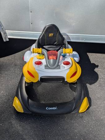 Combi XT All in One Motorcycle Bouncer walker. Has motorcycle handlebars, motor noises, lights and sound. It has 3 adjustments for height. Brakes so it is only a bouncer. It is in excellent condition, has brand new batteries and works as it should. $40 cash only, no emails, please call or text