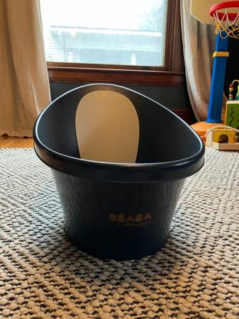 Selling a baby bathtub made by "Beaba by Shnuggle." As far as I can tell this is the equivalent: https://shnuggleusa.com/collections/bathtime/products/shnuggle-baby-bath-newborn-baby-bath-support-with-bum-bump-compact-bathtub-for-babies-bath-seat-suitable-from-birth. I used this for the first year of my daughter's life and it was great.