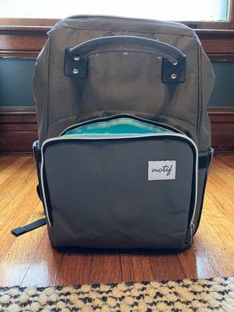 Selling an unused (I think?) breast pump backpack made by Motif. It is the one at the following linkes: https://buybuybaby.bedbathandbeyond.com/Baby/Motif-Breast-Pump-Backpack/40442546/product.html?refccid=YARDMTGIFDYZH7SA5FTZZ3O45U&searchidx=2&option=82827515, https://mymedicaloutlet.com/products/motif-breast-pump-backpack. It looks unused and I don't remember using it. It would make an excellent baby bag generally given its size, all the different compartments, and waterproof lining.