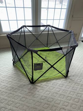 portable playpen by Summer approximate dimensions: 45" diameter, 27" high no holes in netting, all buckles work as they should slight staining. smoke free home willing to meet Victor/ Farmington
