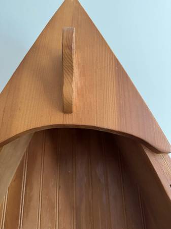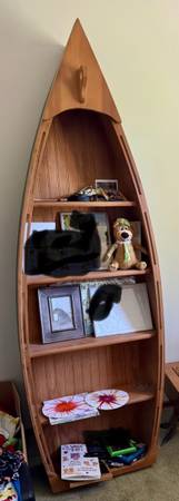 Nice canoe / shelf. This is sturdy wood not particle board. Was over 200 new. Perfect for a den or office with outdoor theme. Open to trading for a desk and chair for kids study room.