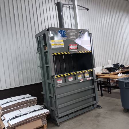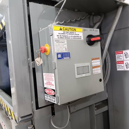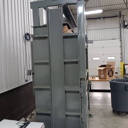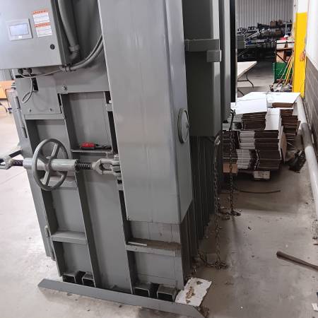 VERTICAL CARD BOARD BALER BY MAX PAK. BE EQUIPMENT SERVICED PICS AT 5-18-25 MAKES 30 X 60 BALE WIRED 480 VOLTS, 3 PH MODEL MP60HD15 SERIAL NUMBER 031813459 15 HP. 460/220 VOLTS 3 PH 20 AMPS
