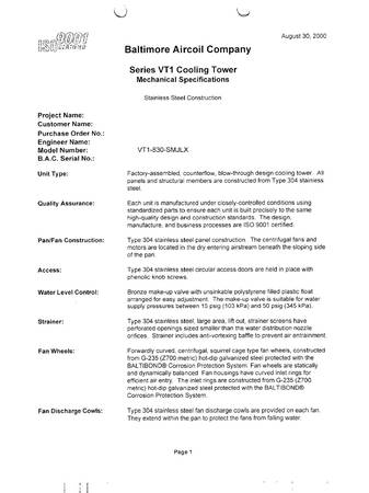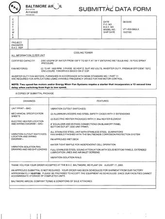 BAC VT1-830-S All Stainless Steel 830 Ton Cooling Towers (2000) - UNUSED SURPLUS