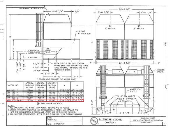 Certified Capacity: 2000 USGPM of Water from 100 Deg. F to 85 Deg. F Entering