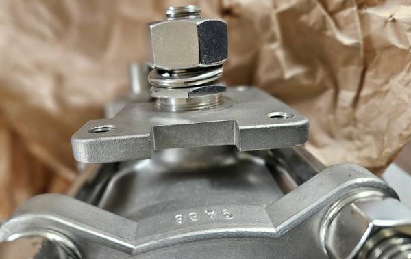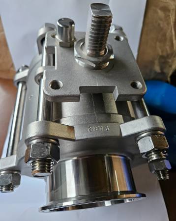 4" Sanitary Ball Valve, Tri-Clamp Ends PTFE Seats/Seals 20RA ID Polish ISO 5211 Direct Mount Pad Lockable Lever Handle Pressure Rating: 1000 WOG F-F: 9.50" C/L of nut to end of lever: 13.75"...