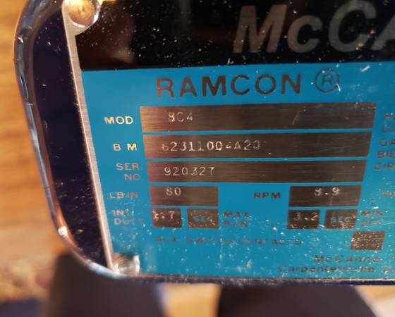 McCanna Ramcon 8C4 Electric Actuator - UNUSED SURPLUS (in Original Factory Box) Model: 8C4, S/N: 920327 Unidirectional Electric Actuator Rated Output Torque: 80 In-lbs Int. Duty: 1.7 Sec. (Max....