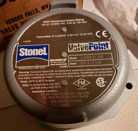 StoneL QZM2VE2R Quartz ValvePoint Mechanical Switches (Item #6) - New Surplus QZM: Quartz Mechanical Model 2: (2) Switches V: SPDT Mechanical Switches E: Epoxy Coated Aluminum Cover 2: Conduit...