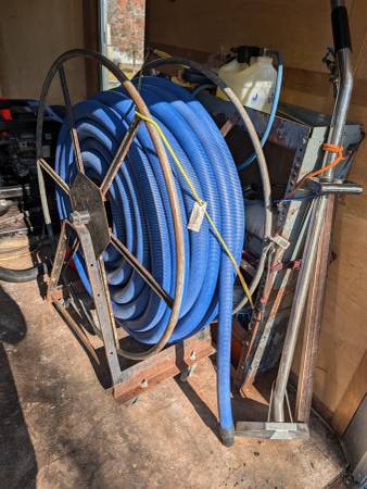 Includes: The trailer, the Hydramaster Carpet Cleaning Machine, 150 feet of vacuum hose, 150 feet of solution hose, and wand, upholstery tool, water claw, and garden hoses.