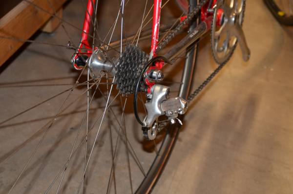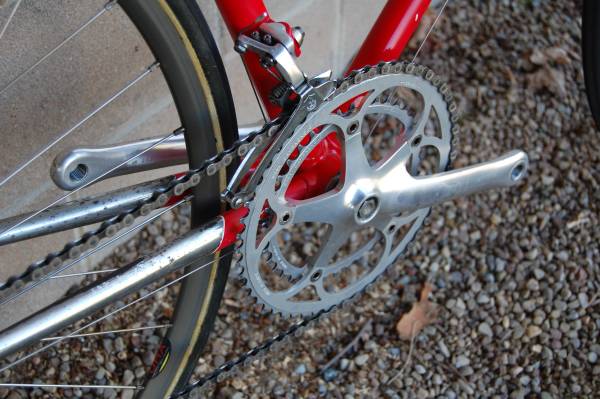 8 speed Campagnolo drivetrain. I am not sure if this is a Record or Chorus group.
