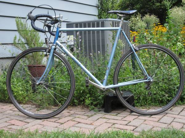 58 cm frame Aluminum main tubes/CroMo forks & stays Campagnolo wheels 1 x 9 gears Selle Italia saddle paint not perfect Continental Gatorskin tires - old