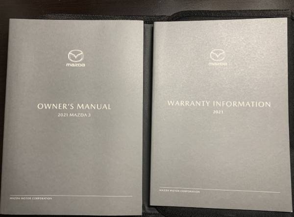 Brand new 2021 Mazda 3 owner's manual and warranty information booklets in black protective sleeve