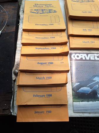 $10.00 takes all. Vintage HEMMINGS MOTOR MAGAZINE 1979 1980 VINTAGE CAR Corvette magazines all in great shape. Text or call me come pick him up on Akron Street Rochester New York 14609