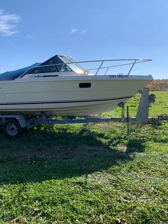 Price reduced Boat for sale 1982 with trailer needs 1 tire 20 FT GMC 3.6 engine Trailer, auto pilot, cover, fish finder, wash down deck. Canopy As is winterized. No delivery or shipping. Pick up...